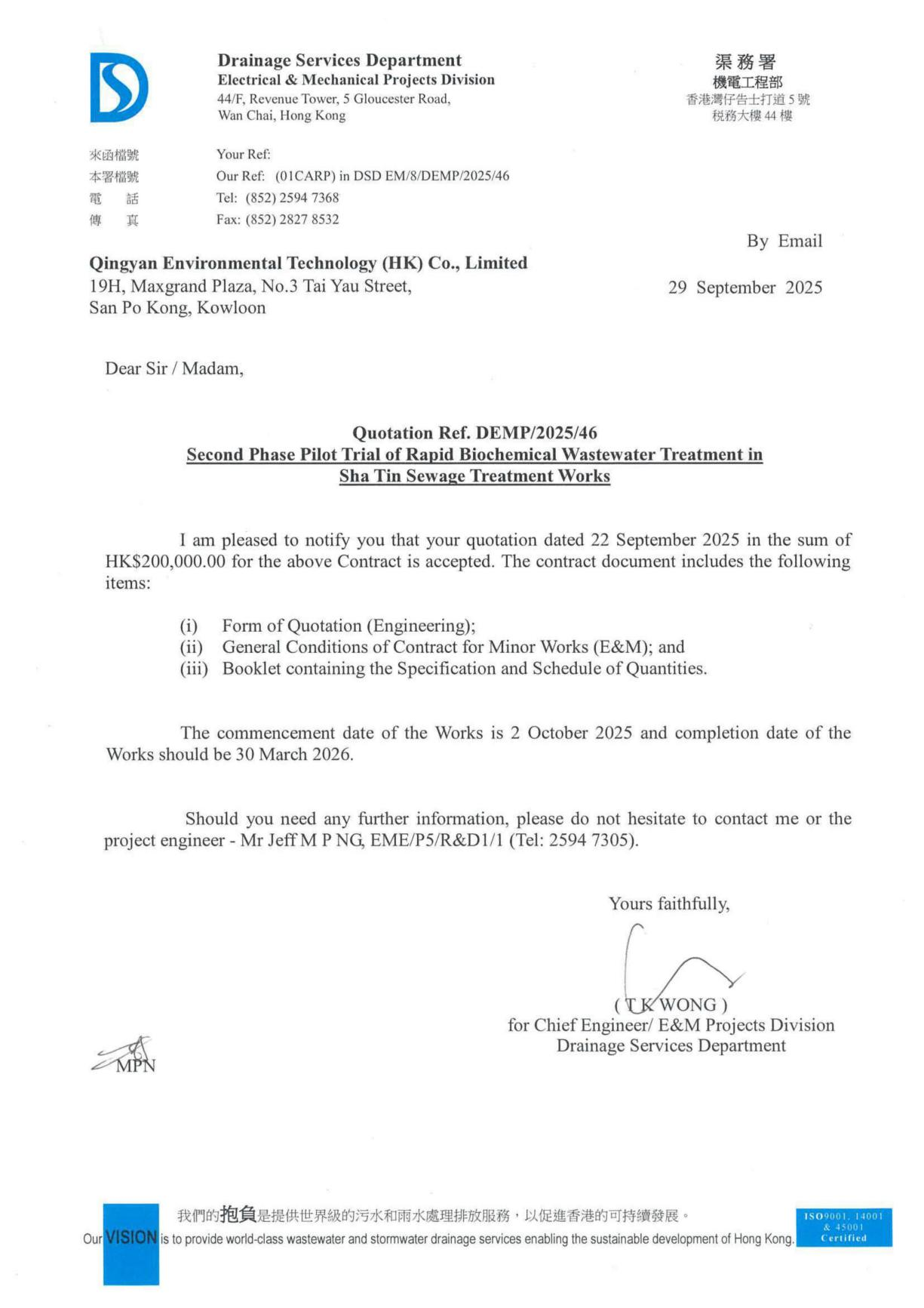基于第一期中试的良好数据结果,香港渠务署(以下简称DSD)决定再次资助公司开展第二期中试项目,且此次资助金额为20万港元,较一期资助金额翻倍(一期中试获得DSD10万港元研发资助),充分体现了DSD对15vip太阳成环境RPIR技术的高度认可。